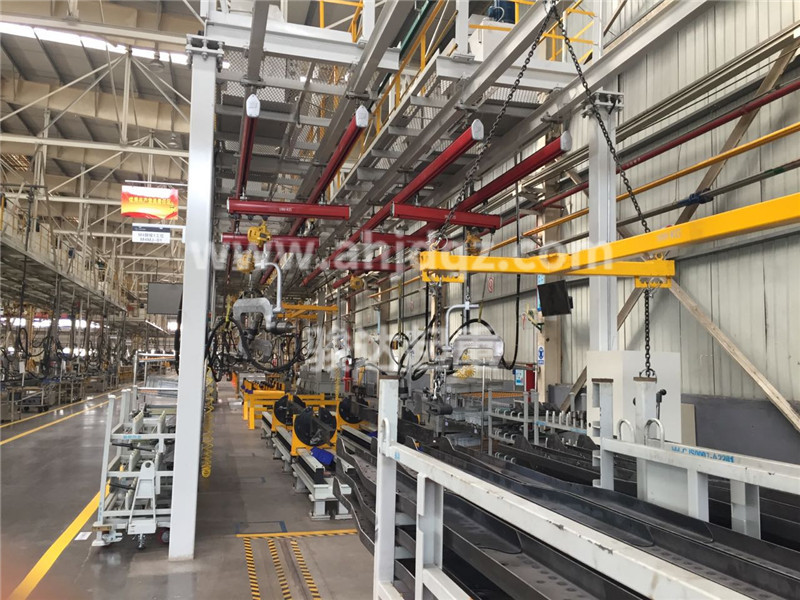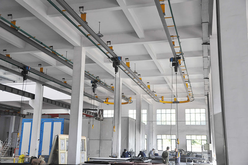 JKBK悬挂起重机系统可根据工厂各工位的需要,灵活地设计安装。从定点运送到高准确度的多点、多节拍的自动化输送线,都能随意组合而成。可用于新设计的厂房,也可用于系统的改造和延伸。